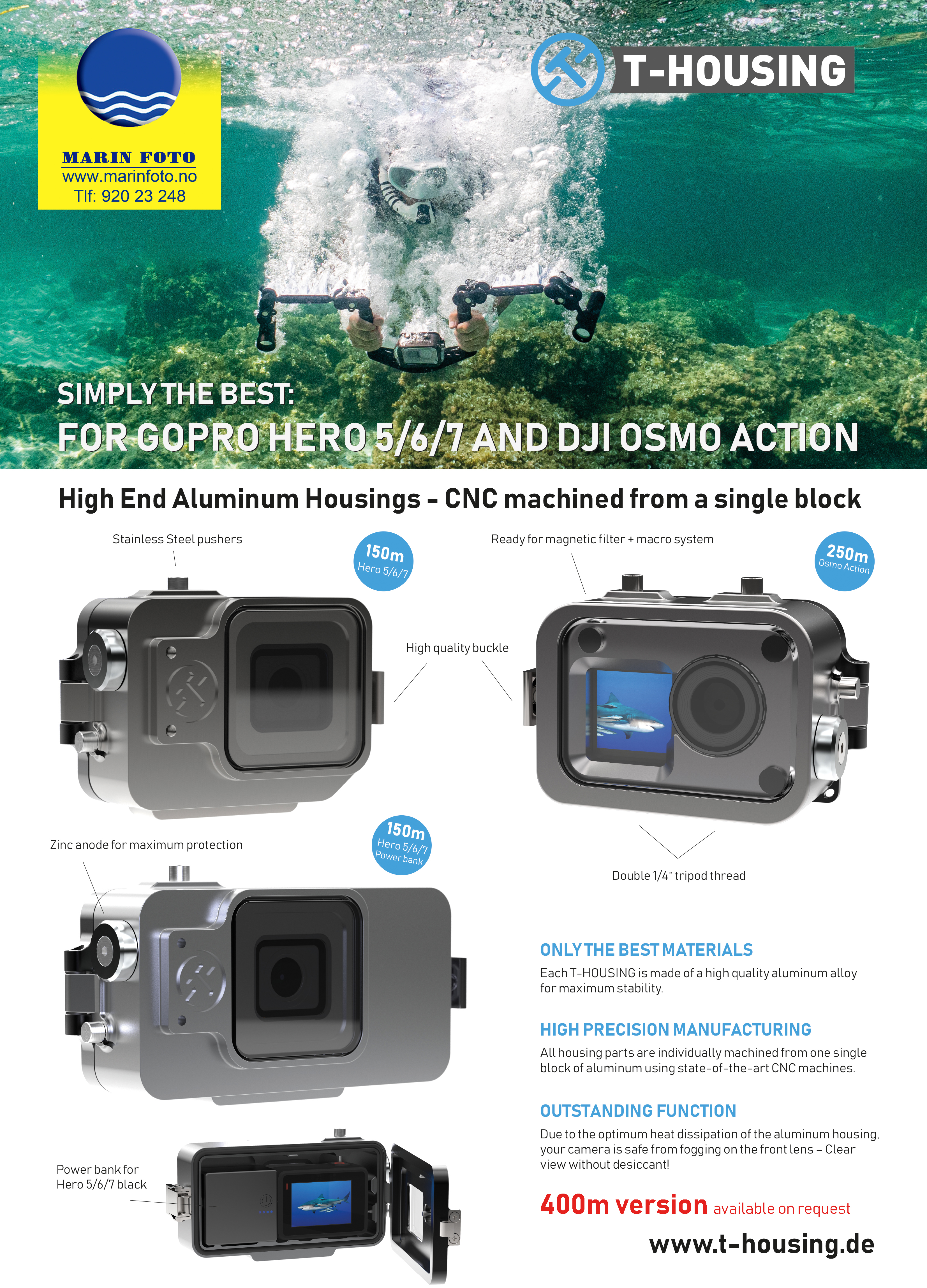 Kan brukes til dykking ned til 50m.